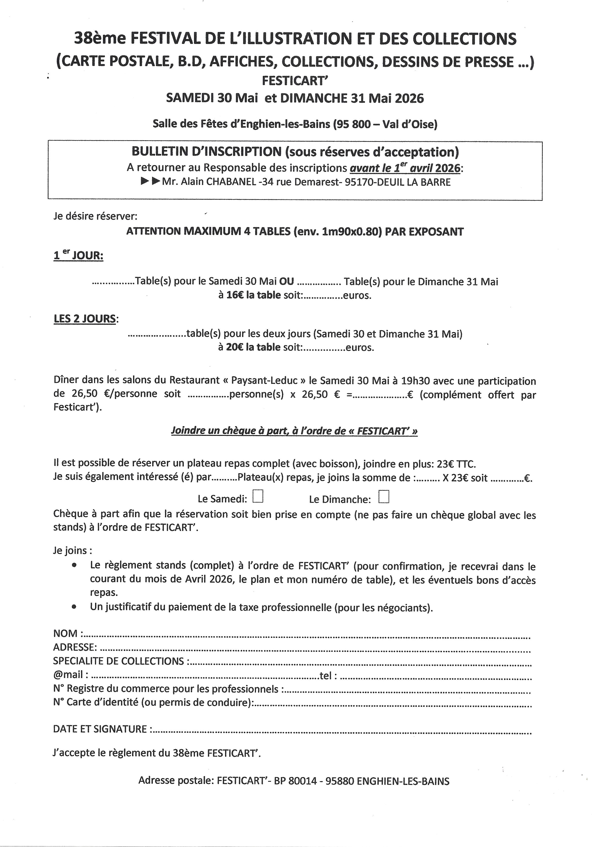 montage exposants à partir du vend 29 Mai 2026 à 15h ou sam 30 Mai à partir de 07h30 - démontage possible Dim 31 Mai à partir de 17 h30