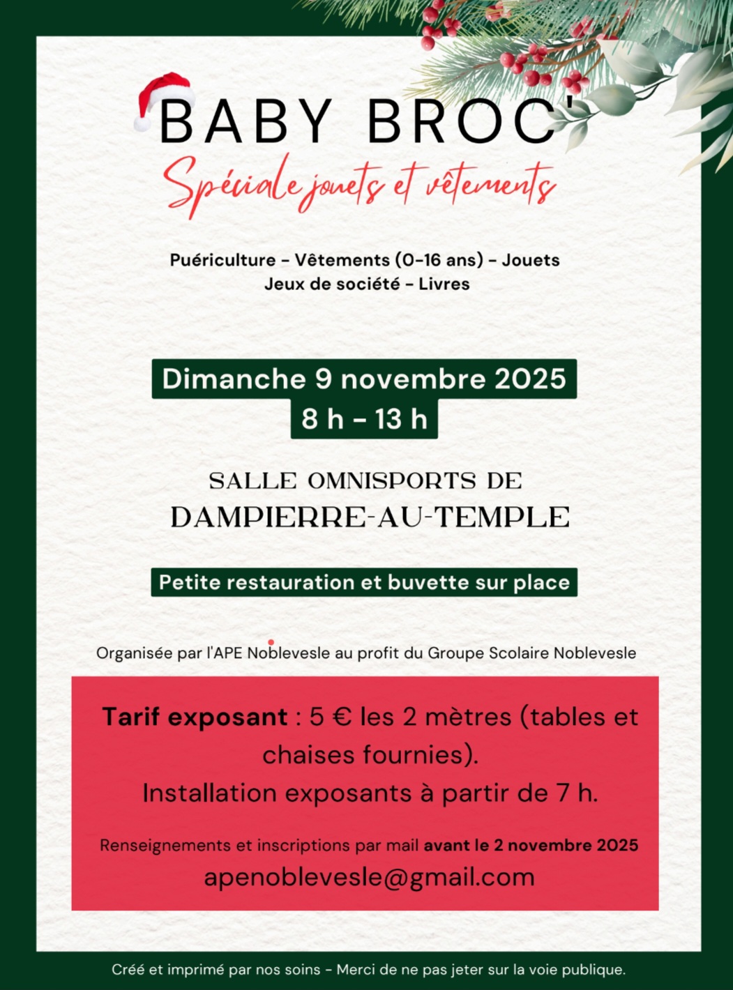 IMPORTANT : Avant tout déplacement, nous vous invitons à vérifier les informations auprès de l’organisateur.