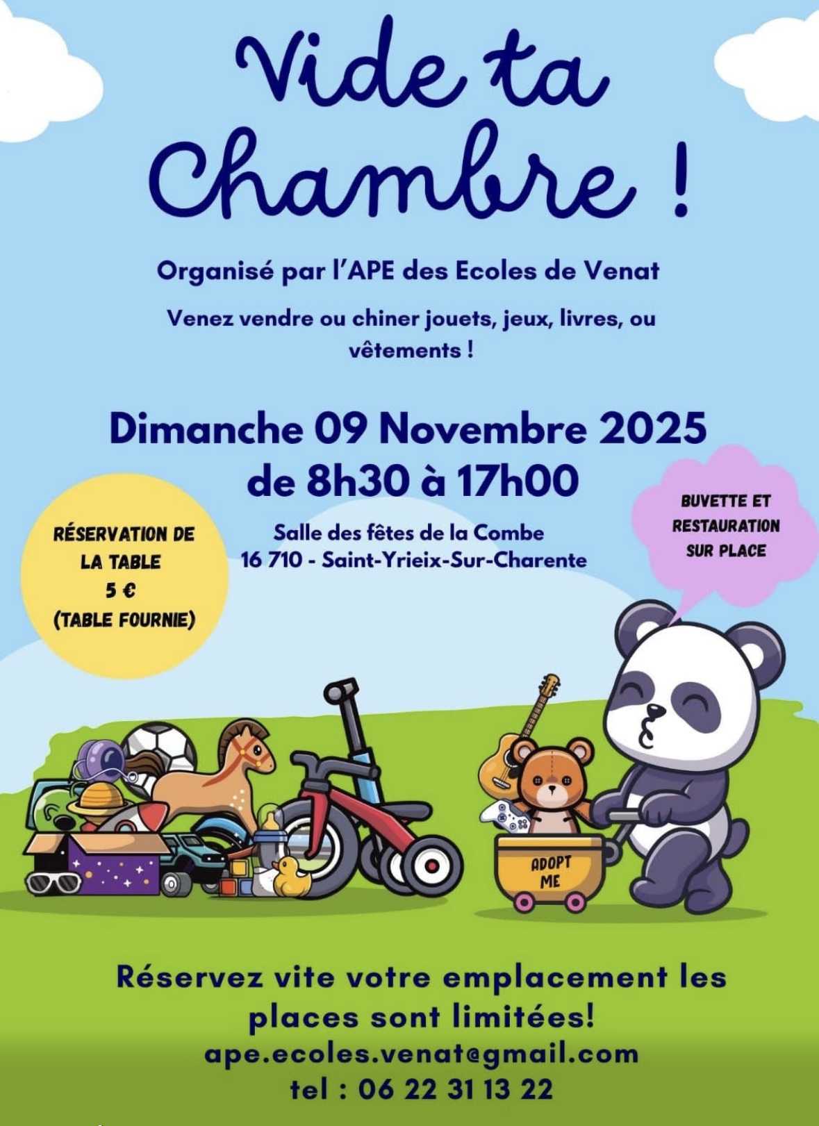 L’APE DES écoles de Venat a saint yrieix organise un vide ta chambre