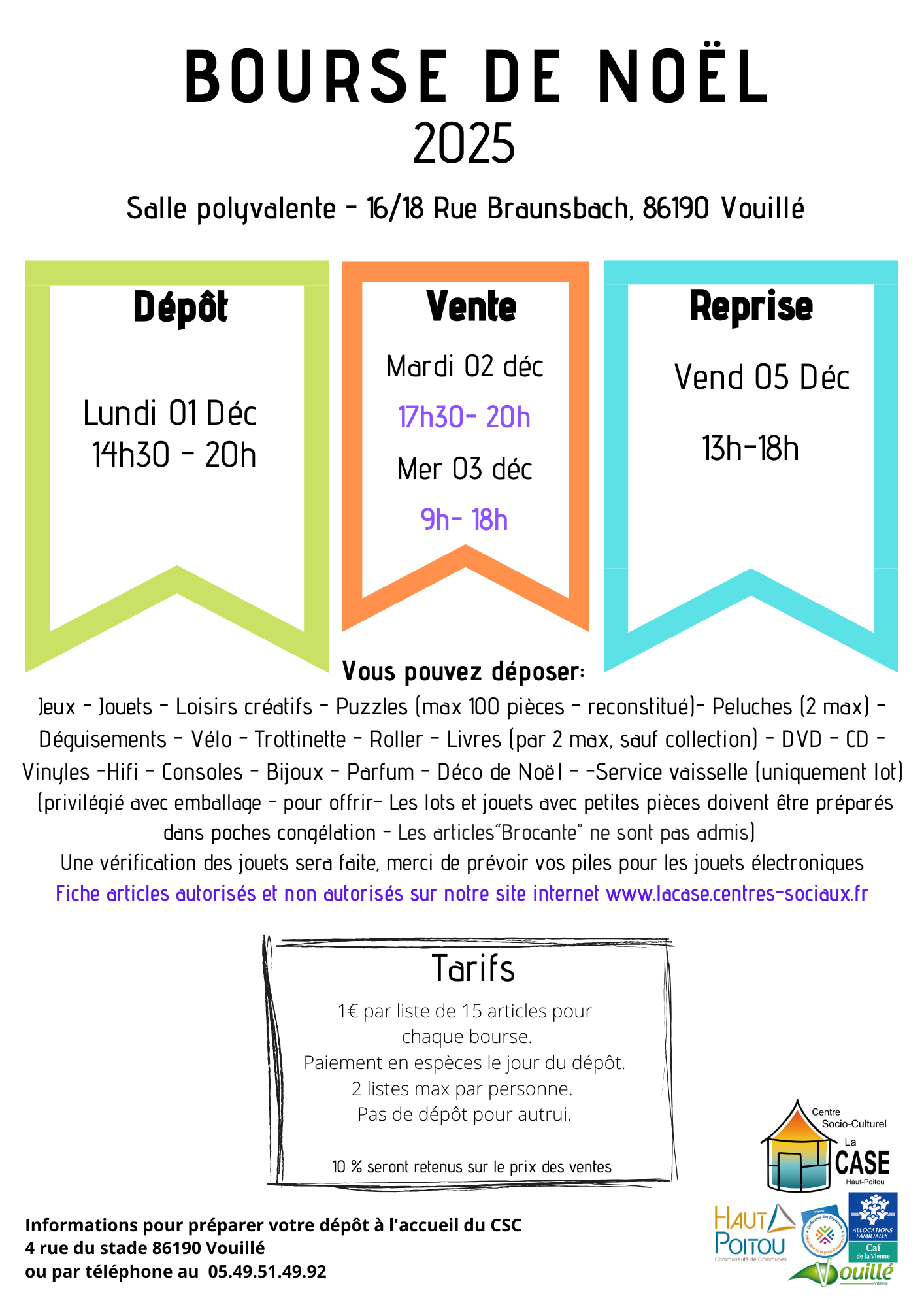1€ par liste de 15 articles pour chaque bourse 2 listes max paiement le jour du dépot