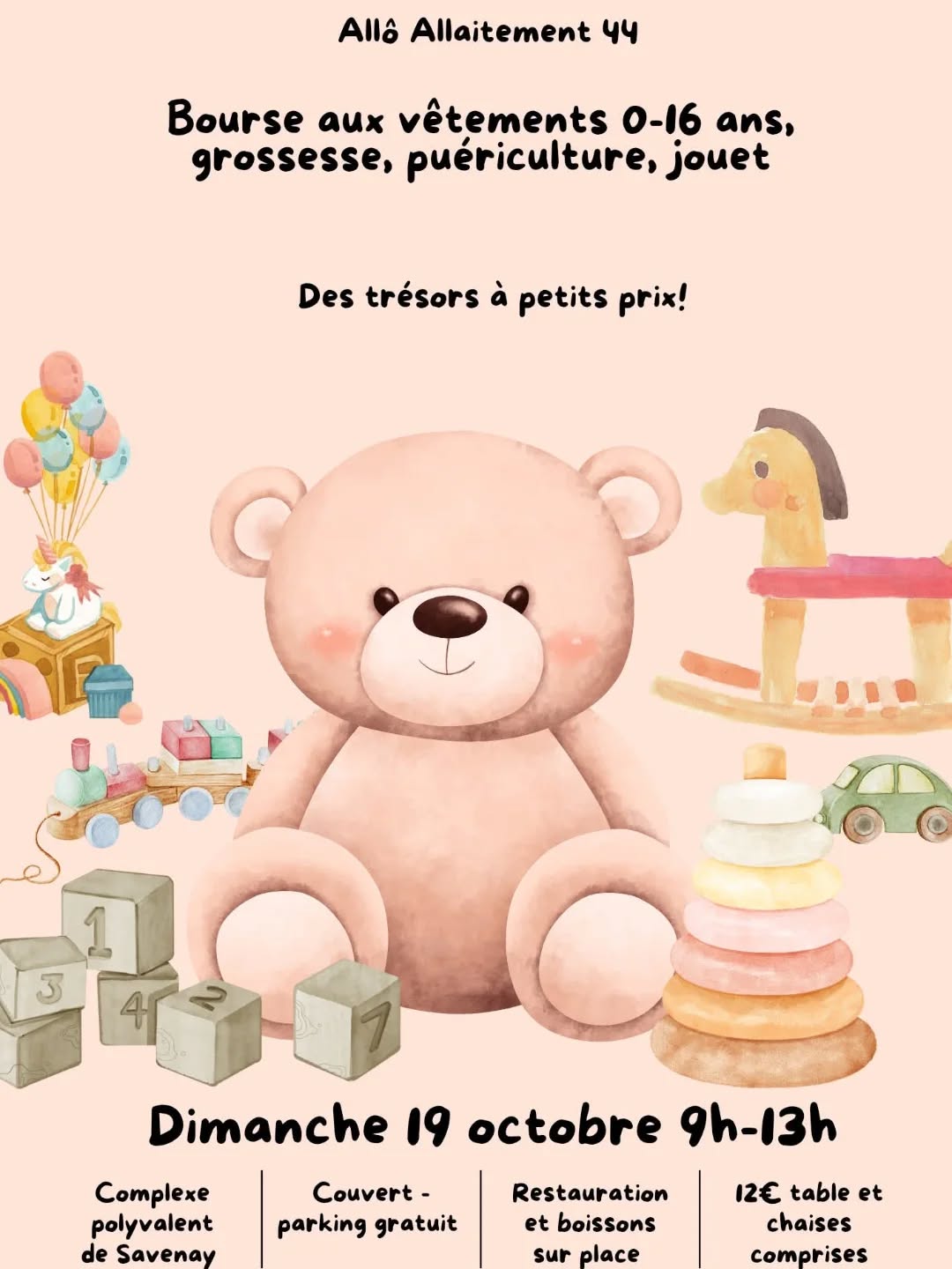 arrivée 7h, fin de la bourse au vêtement 13h, ranger son stand
