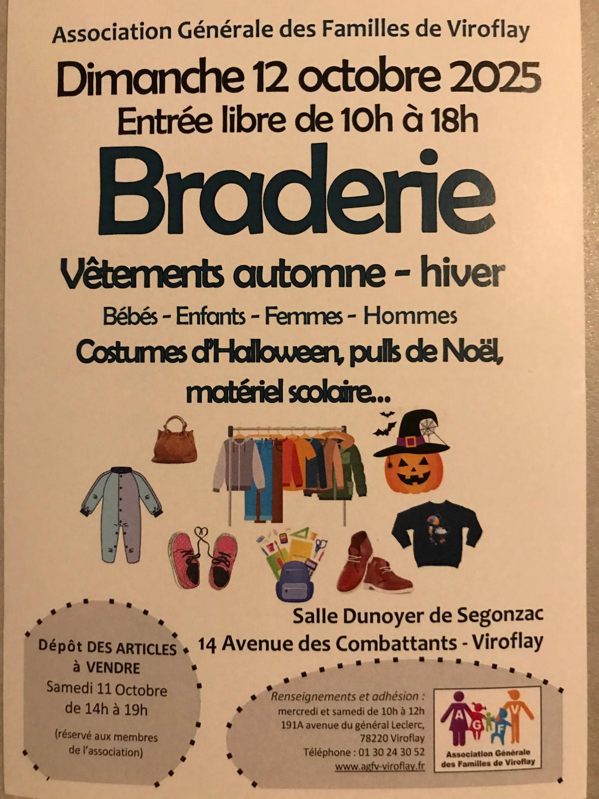 Notre association propose à la vente plus de 2000 articles (des vêtements (enfants, femmes et hommes), des accessoires (bonnets, écharpes, gants, bijoux fantaisies, chaussures,...), des déguisements pour Halloween ou des pulls de Noël, ainsi que du matériel scolaire (cartables, trousses, feuilles, lutins, cahiers).
