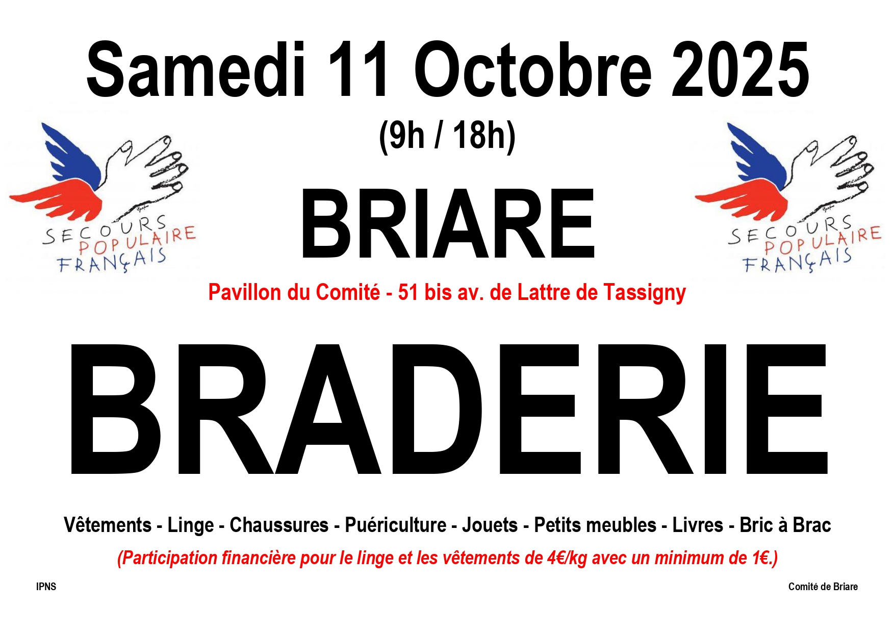 secours populaire comité Briare. 51 bis avenue Maréchal de Lattre de Tassigny