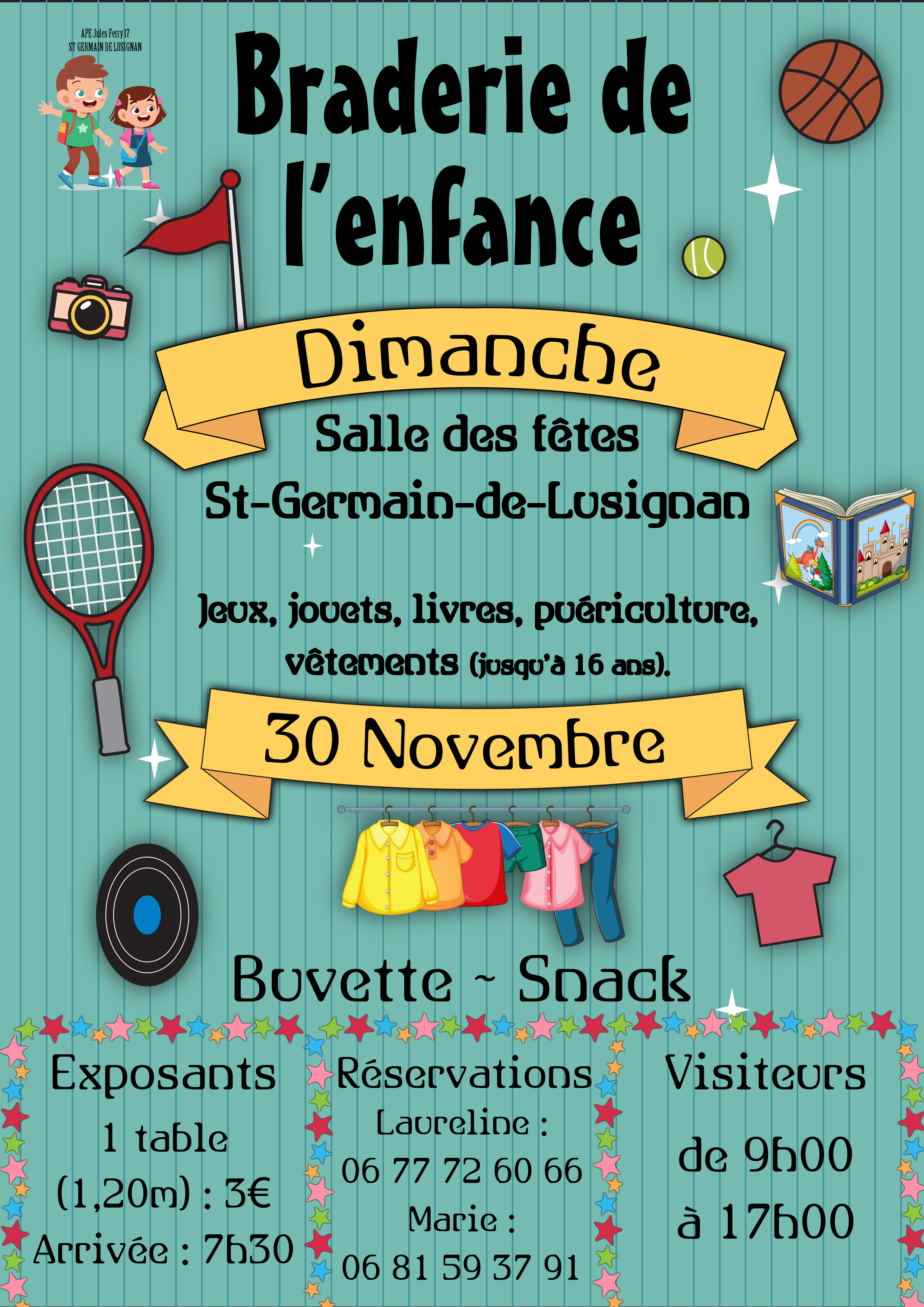 3€ la table (1.20m), 2 chaises fournies. Arrivée des exposants à partir de 7h30. Réservation par téléphone auprès de Laureline : 06 77 72 60 66 ou Marie : 06 81 59 37 91