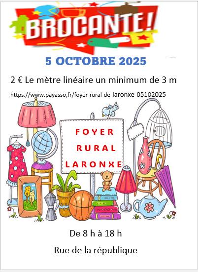 2€ le mettre 3 mètres minimum https://www.payasso.fr/foyer-rural-de-laronxe/brocante-05102025