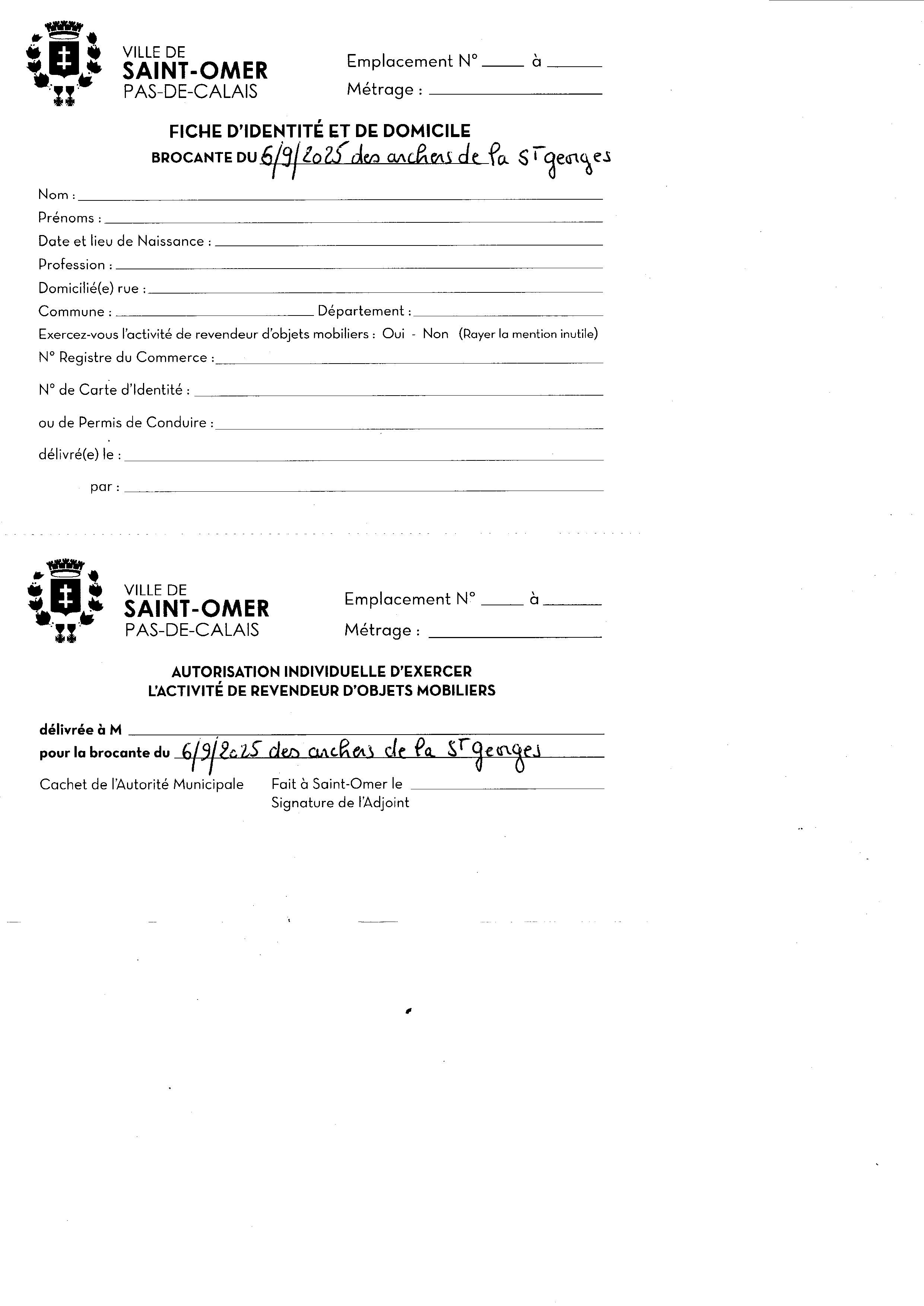 Part. : 4 €/4 m, commerçants ambulants : 8€/4 m