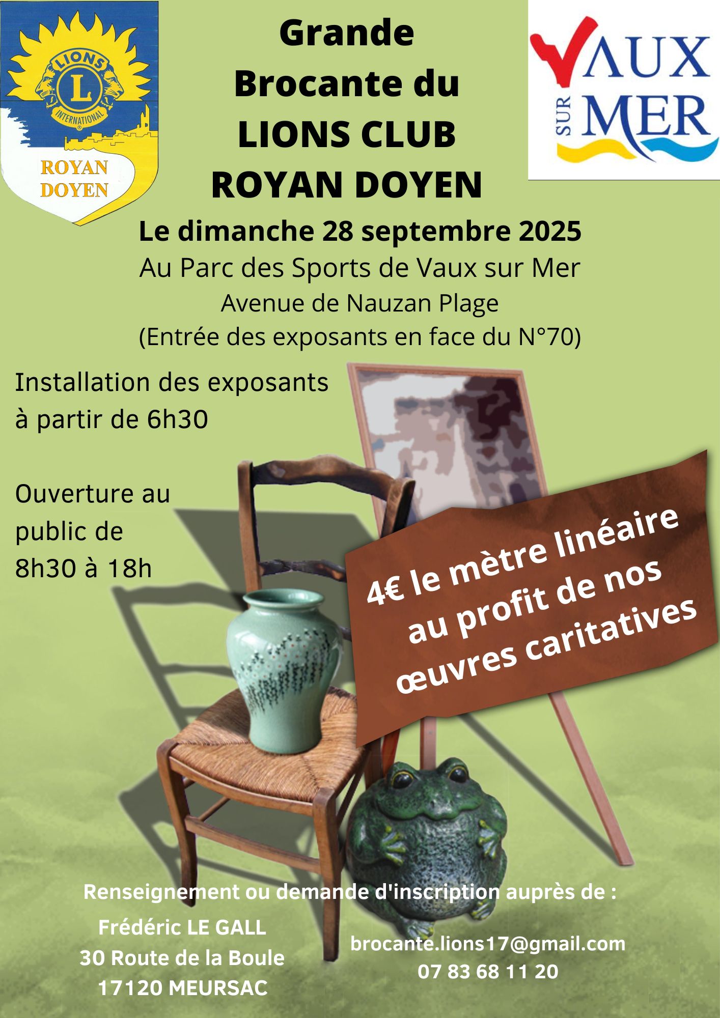 Un stand buvette et restauration sera installé. Dans la mesure où votre véhicule reste à côté de vous pendant la brocante, merci de réserver un nombre de mètres linéaires au moins égal à sa longueur afin que ce soit confortable pour tous.