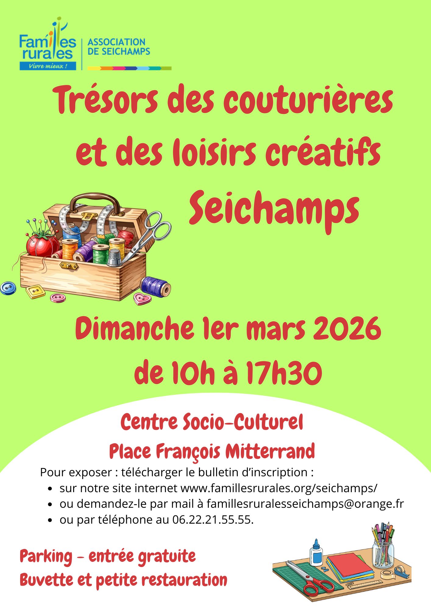 Bulletin d'inscription à télécharger sur https://www.famillesrurales.org/seichamps/22/manifestations ou tél 06 22 21 55 55