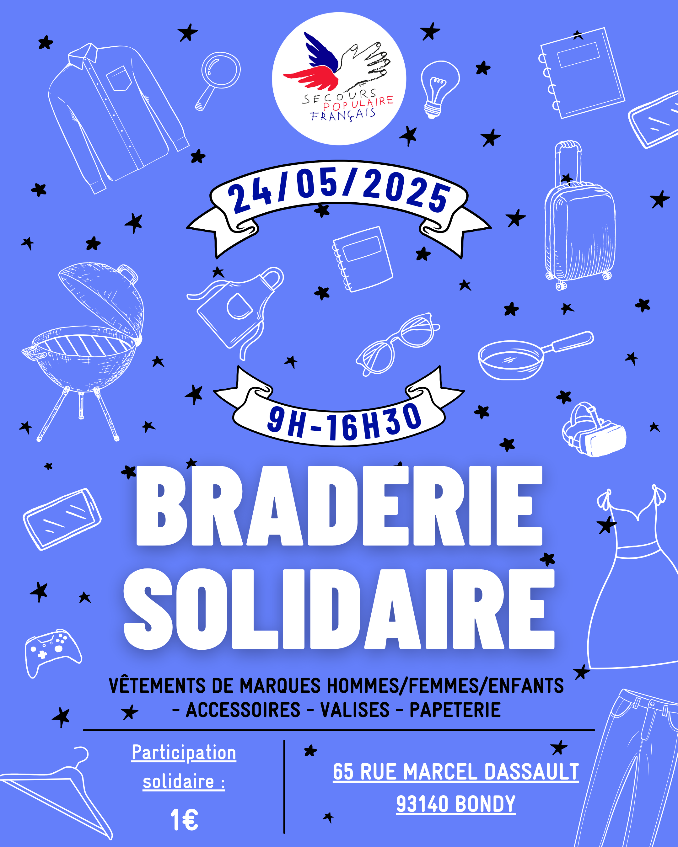 ✨ Le samedi 24 mai de 9h à 16h30, venez chiner et soutenir la solidarité à notre première grande braderie organisée au nouveau siège de la fédération à Bondy ! Vous découvrirez un espace de solidarité flambant neuf et notre nouvelle maison !