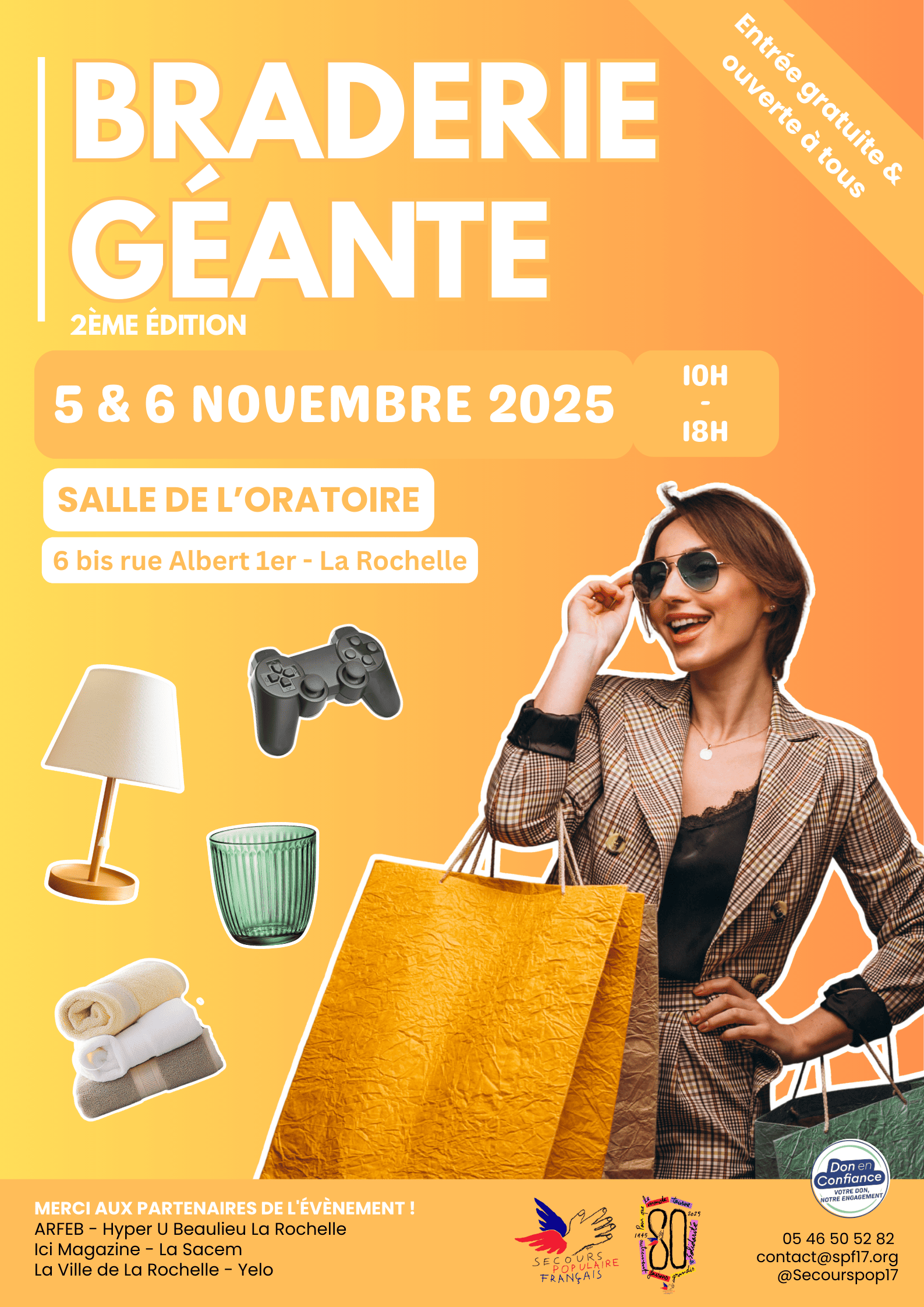Le Secours populaire français (SPF) de La Rochelle est fier d'annoncer l'organisation de sa seconde braderie géante, les 5 et 6 novembre 2025, à la salle de l'Oratoire. Cet événement solidaire a pour objectif de collecter des fonds afin de financer les nombreuses actions de solidarité mises en place tout au long de l'année.