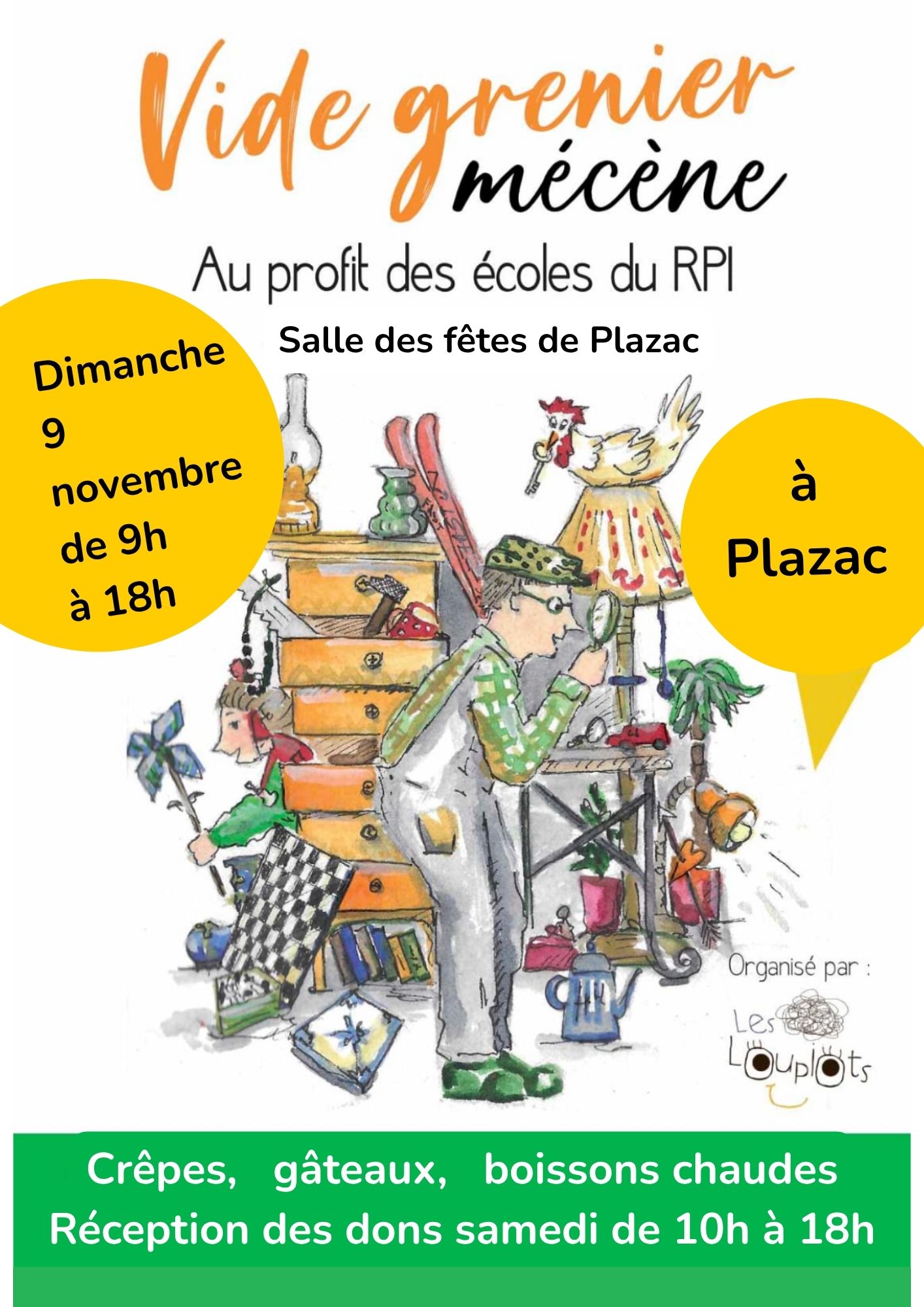 Vide grenier au profit des écoles du RPI Plazac/Saint Léon sur Vézère/ Peyzac le Moustier.