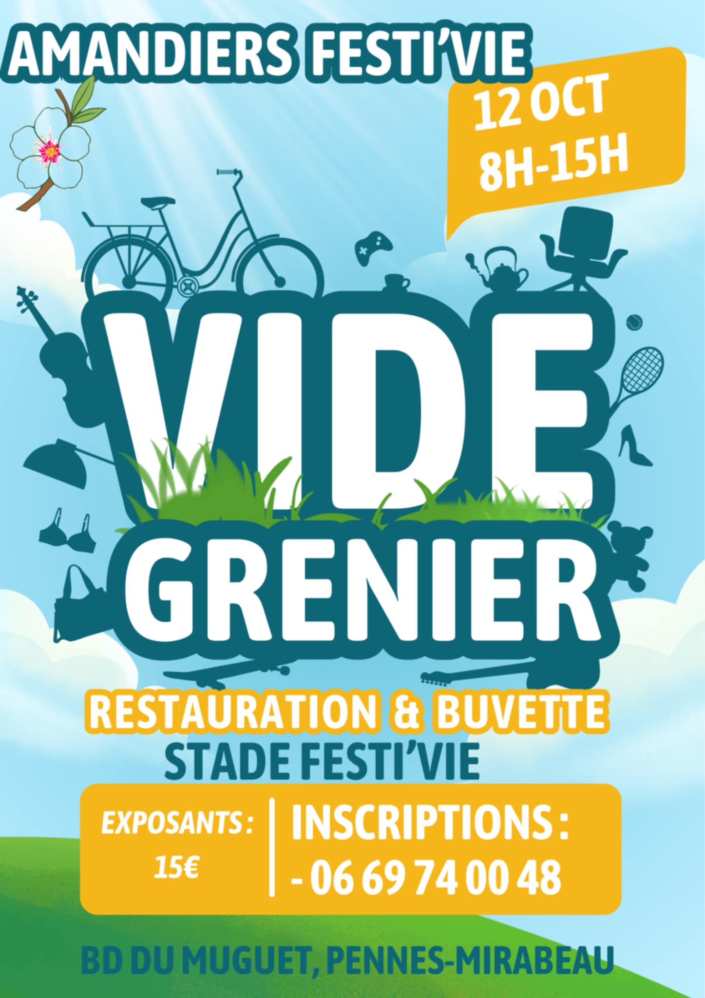 15€ l'emplacement de 4 mètres sur 2 mètres