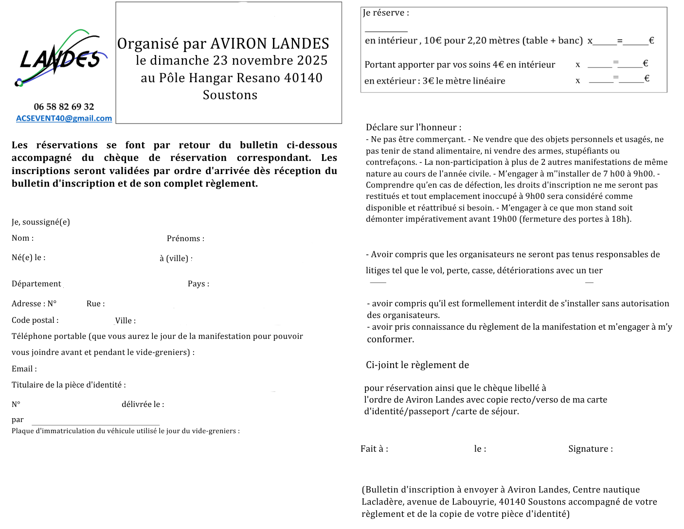 en intérieur 10€ pour 2,20 mètres (table + banc), en extérieur : 3€ le mètre linéaire, en extérieur, 4€ le portant en intérieur fourni par vos soins