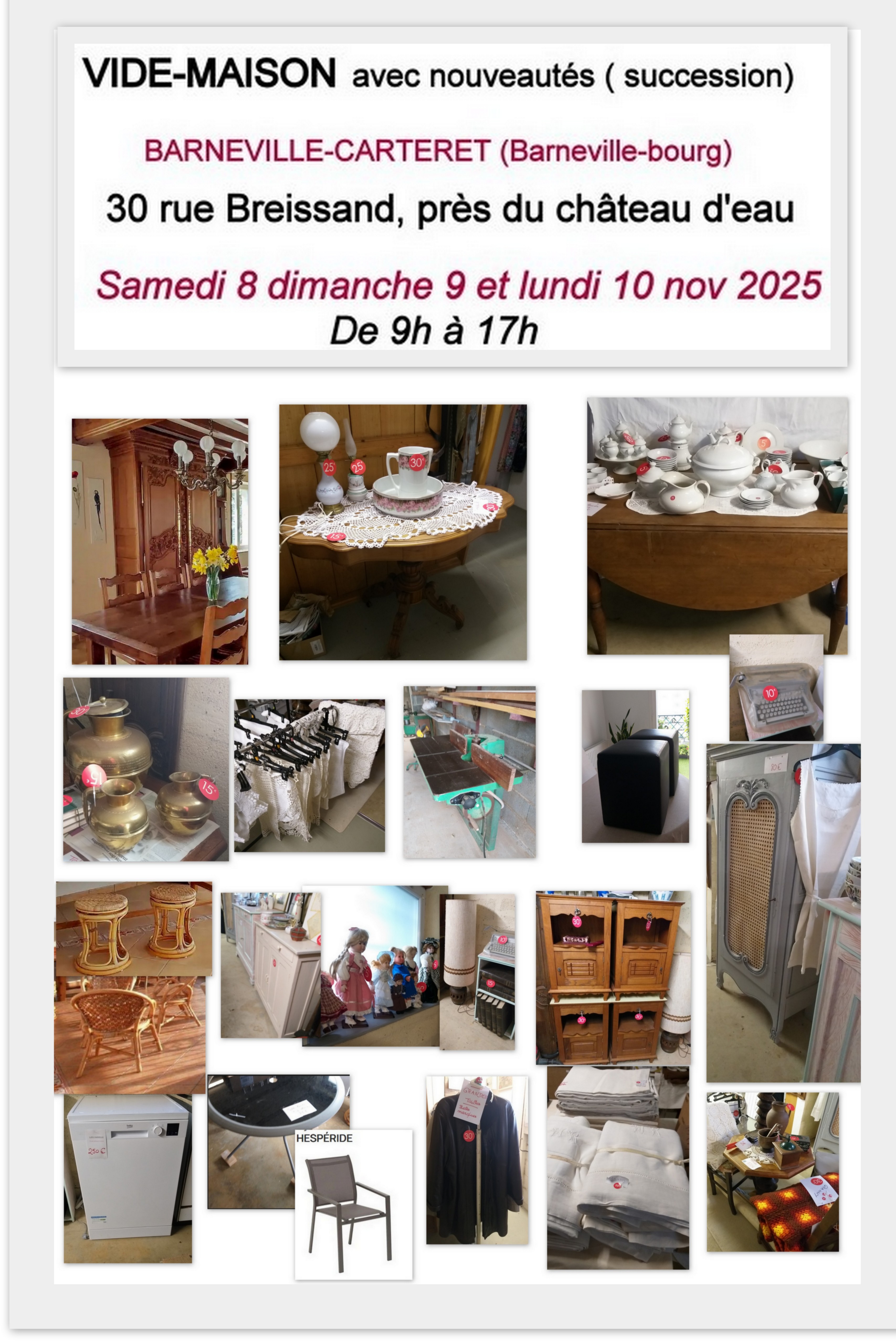 Entrée gratuite, vente à l'intérieur du domicile.